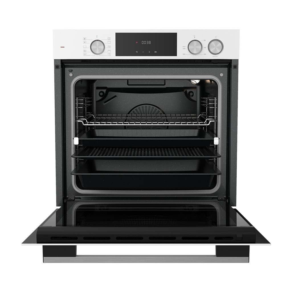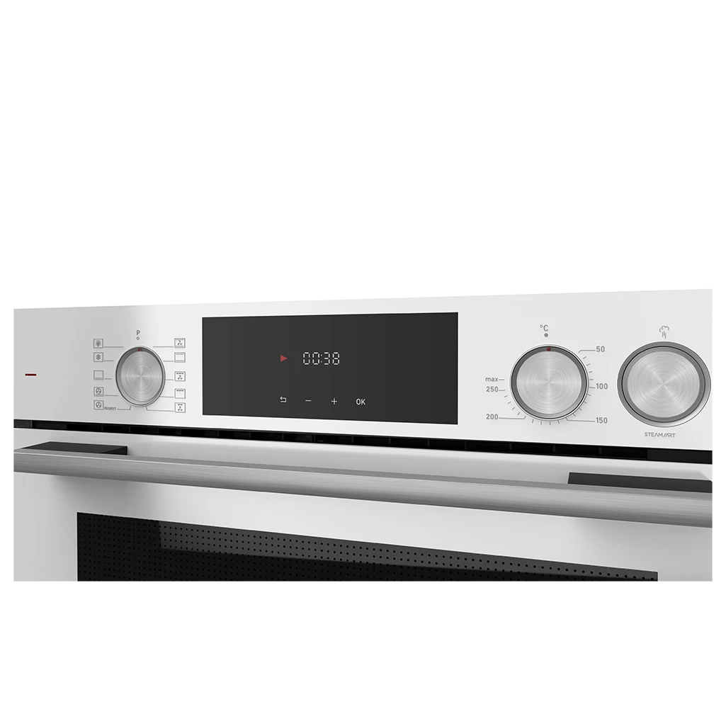 Şık beyaz LED’li dijital kontrol paneli sayesinde ayarladığınız süre sonunda fırınınız sesli uyarı vererek kendi kendine durur.